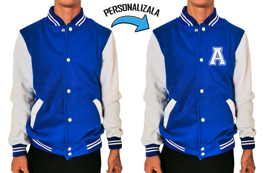 Chamarra Varsity Béisbolera Personalizada Azul Rey